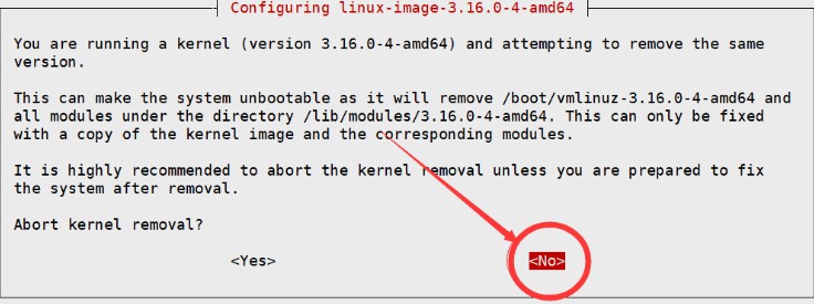 注意:如果在安装内核环节出现这样一张图,注意选择NO